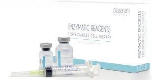 Contents: 1x pre-filled syringe with 1.5ml hyaluronic acid, 1x vial with lyophilized enzymes in powder form, 1x vial with buffer solution
