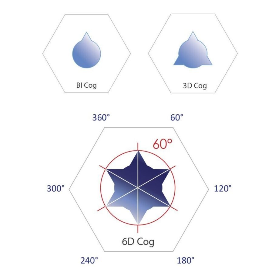 Variety of cog types: multidirectional cog, 4-stroke cog and hook cog.