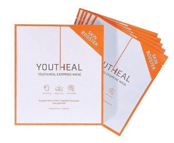 YOUTHHEAL Exoprime Masks is a hydrogel mask with dual PDRN and dual plant exosomes that improve overall skin health and condition.
